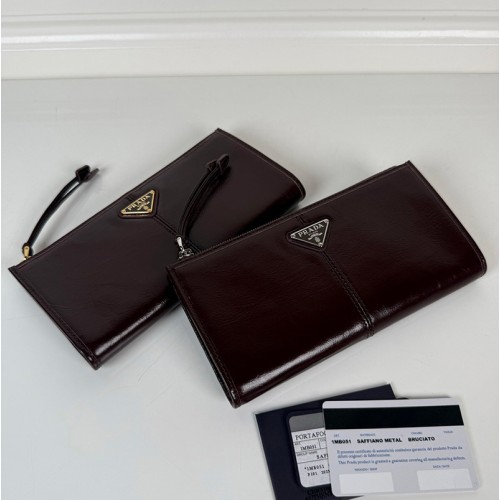 프라다 가죽 파우치 은장 금장 와인 1MB051