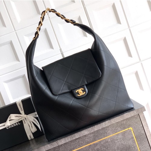 샤넬 맥시 호보 백 유광 카프스킨 블랙 AS5839