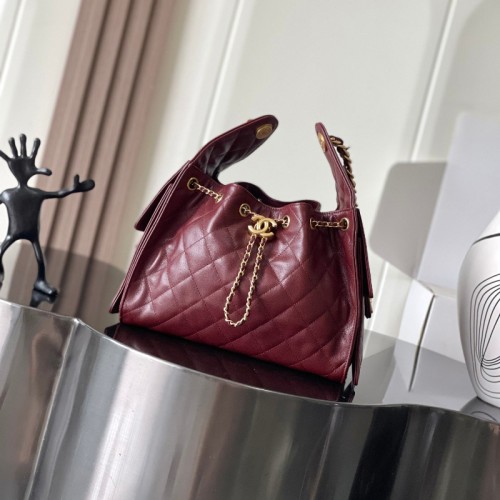 샤넬 25백 스몰 워시드 데님 버건디 AS5293