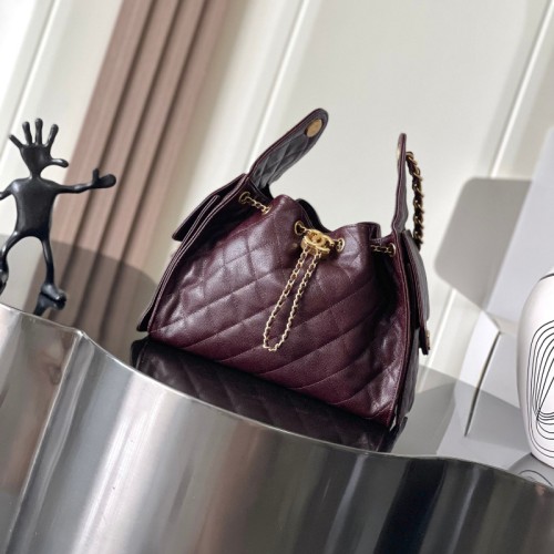 샤넬 25백 스몰 워시드 데님 버건디 AS5293