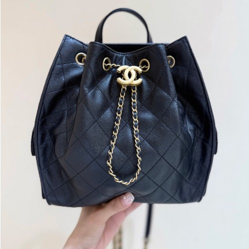 샤넬 핸들 라지 플랩 백 카프스킨, 골드 메탈 블랙 AS5467