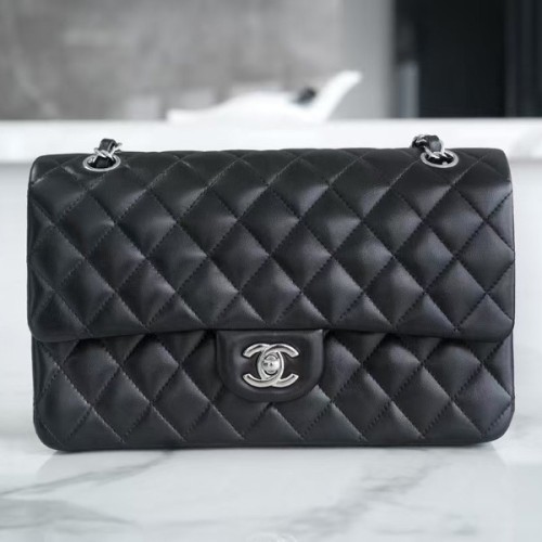 샤넬 클래식 미듐 램스킨 은장 플랩백 A01112