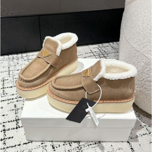 프라다 삼각 로고 스웨이드 시어링 로퍼 베이지 1D717N