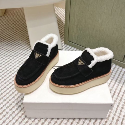 프라다 삼각 로고 스웨이드 시어링 로퍼 블랙 1D717N > 로퍼