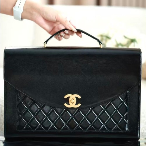 샤넬 24A 골드버튼 아가일 셔링 서류가방 여성 블랙 AS5016