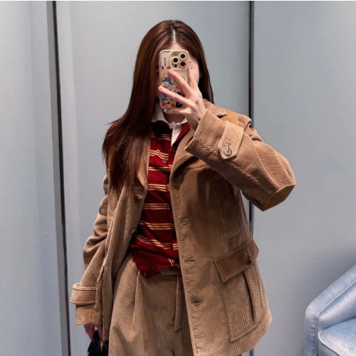 미우미우 코듀로이와 가죽 소재의 스트레이트 재킷 MH2037 Y