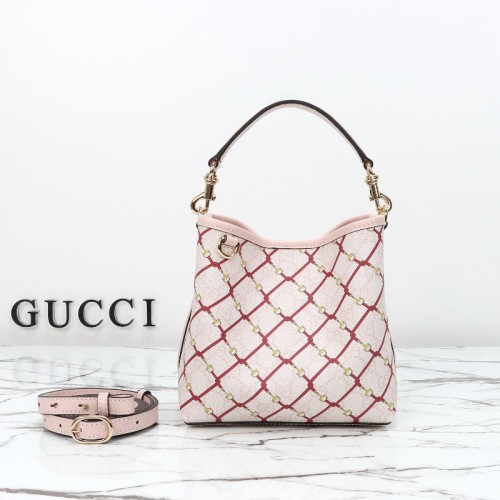 구찌 여성 토트백 엠블럼 스몰 버킷백 핑크 815118