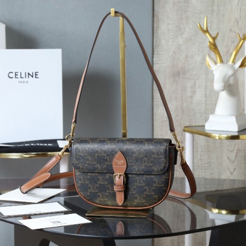 셀린느 폴코 숄더백 트리옹프 캔버스 카프스킨 탠 122652GTL